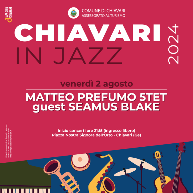 Il primo appuntamento, in programma nell’affascinante scenario di Piazza Nostra Signora dell’Orto a Chiavari alle ore 21:15 con ingresso gratuito, vede la presenza del chitarrista ligure Matteo Prefumo. Con lui sul palco alcuni tra i musicisti jazz più riconosciuti della nuova generazione: Tony Tixier al pianoforte, Dario Deidda al basso e Francesco Ciniglio alla batteria. Una band che ha ottenuto il secondo posto negli Stati Uniti con la composizione di Matteo Prefumo dal titolo “A New Beginning” nella categoria Instrumental dell’international Songwriting Competition con oltre 15.000 partecipanti. La sua musica riceve regolare rotazione su alcune delle stazioni radio jazz più importanti degli USA.
