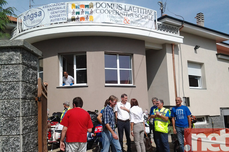 Siamo oltre 100. Con noi anche Mariela, mamma di Leonardo, il bimbo autistico che è diventato la nostra mascotte, con la sua ets 125 e Corrado, del vespa club di Chivasso che ci seguirà con un furgone per le prime 4 tappe. Breve giro per le vie cittadine e poi verso Candelo. In piazza Castello ci attende la vicesindaco e l'amica assessore alle politiche sociali. Il gruppone comincia a disgregarsi vista l'ora di pranzo, ma noi abbiamo la sosta più importante: la casa per l'autismo. Il nostro obbiettivo ed il fine principale dei nostri viaggi. Una bellissima sorpresa, la casa è quasi terterminata. Fra una settimana l'inaugurazione. Ora bisogna trovare i fondi per mantenerla e per le terapie per 40 soggetti giornalmente.