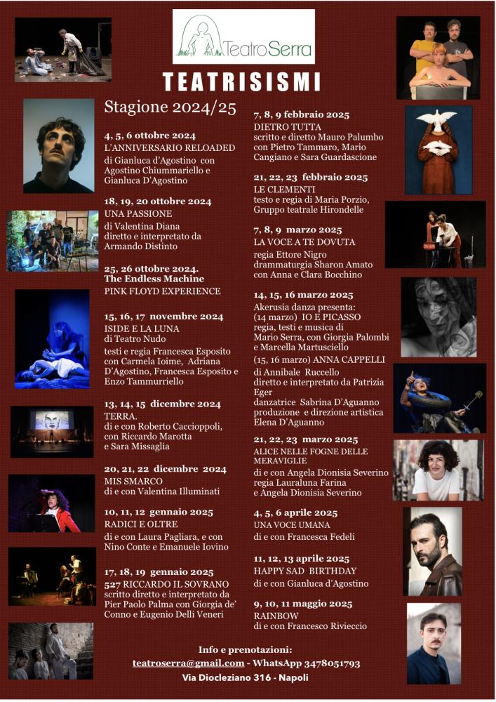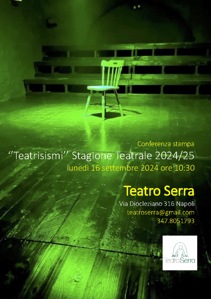 L’attualità, il potere della voce e della parola come strumento di resistenza e le questioni cruciali del nostro tempo: la discriminazione, il pregiudizio, l’alienazione, la guerra. Sono i temi della Stagione 2024/25 “Teatrisismi” del Teatro Serra di Napoli. Conferenza stampa lunedì 16 settembre, alle 10:30. A Fuorigrotta, in Via Diocleziano 316. Info: teatroserra@gmail.com, 347.8051793 - 334.3224441.