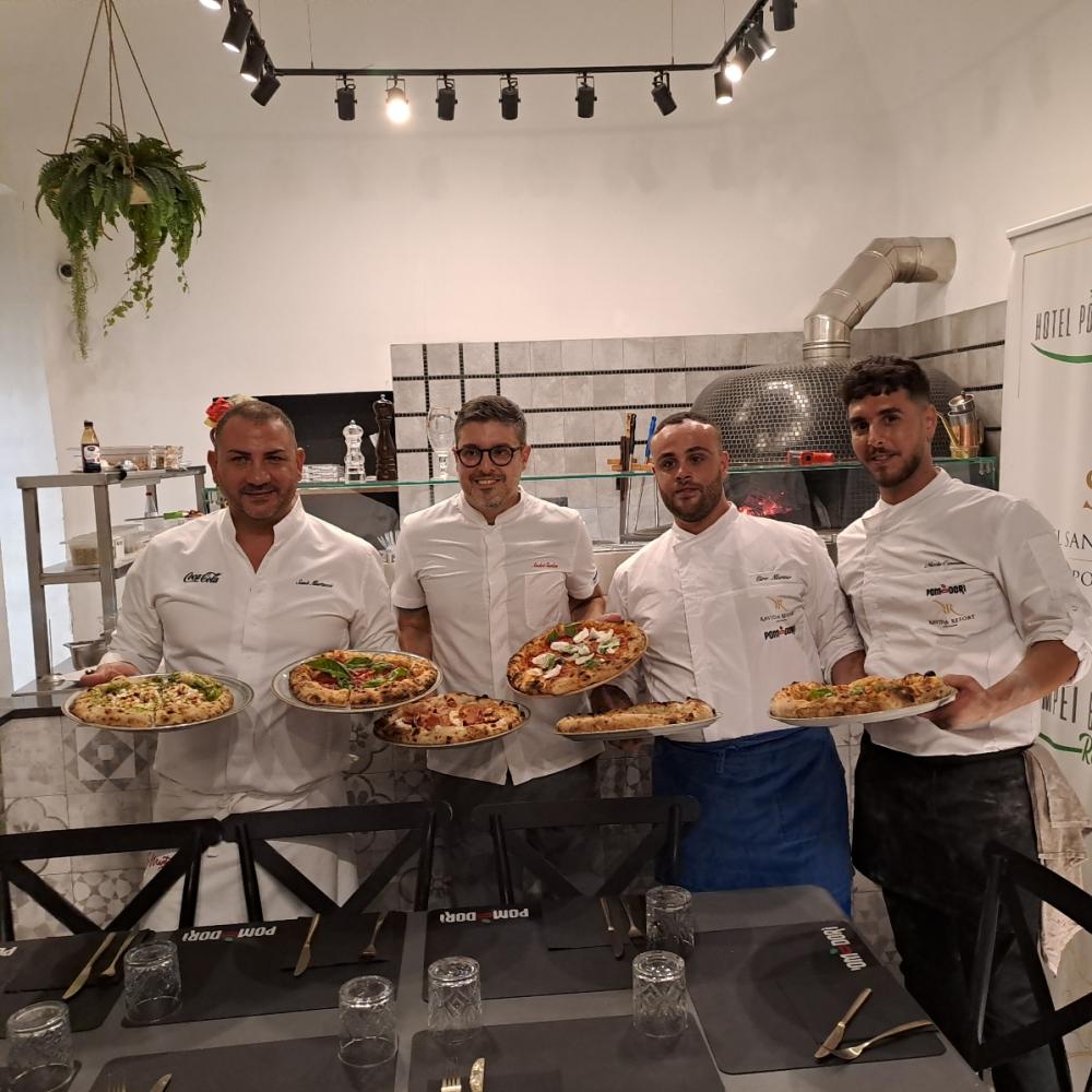 Pompei non cessa di stupirci con le meraviglie di duemila anni fa. Lo scorso hanno è stata diffusa la notizia del ritrovamento di un affresco nel Parco Archeologico che ritrae un vassoio con prodotti della campagna che venivano offerti all'ospite che visitava la casa a dimostrazione della ricchezza del suo proprietario. Al centro del dipinto alcuni hanno voluto individuare l'antenata della nostra pizza per confermare l'origine partenopea della pietanza che meglio ci rappresenta nel mondo. Sembrava proprio una pizza con pomodoro e mozzarella, cosa non possibile poiché la mozzarella non era ancora nota e il frutto d'oro è stato portato in Europa nel 1540 dal conquistador Hernán Cortés. I semi giunsero in Europa dal Messico al seguito di coloni e missionari. In ogni modo il piatto raffigurato nell'affresco potrebbe comunque avere un legame, la discussione è ancora aperta. Come ulteriore elemento di confronto un gruppo di gastronomi, capitanati dal giornalista gastronomo Renato Rocco, direttore responsabile della testata online La Buona Tavola Magazine, il giornale che parla e sa di buono, hanno voluto portare avanti un’interessante esperimento. Si sono chiesti: “come doveva essere la pizza all’epoca dei Romani di Pompei, che erano notoriamente dei buongustai ?”, e come si contraddistingue la pizza di oggi con il pomodoro San Marzano ? L'evento "Pompei Ante Pomodoro e Dopo Pomodoro" A.P.VSD.P. è stato voluto da Anna Talamo e Raffaele Vingiani titolari del Ravida Resort di Pompei, con annessa la pizzeria Pomodorì. L'entrée è stata preparata dallo Chef resident Giuseppe Auricchio, sono seguite le pizze elaborate da: Andrè Guidon di " Leggera Pizza Napoletana " di San Paolo del Brasile; Sasà Martucci della pizzeria "I Masanielli" di Caserta e Nicola Cesarano resident della pizzeria Pomodorì. All’evento, che ha visto la partecipazione di numerosi giornalisti e blogger di settore, ha partecipato anche il V. Chargé de Presse dell’Accademia Internazionale di Gastronomia Chaîne des Rôtisseurs del Bailliage di Frosinone, che ha portato il saluto della Chaîne. Il sindaco di Pompei Carmine Lo Sapio ha presentato la sua città illustrando i progetti futuri: «C'è stato un lavoro costante, anche durante la pandemia - ha dichiarato il sindaco Lo Sapio - purtroppo per noi, per Pompei, è stato un disastro. La città turistica romana regge sul terziano. Oggi devo dire che anche durante quella parentesi che ormai in realtà speriamo chiusa, si sono fatti molti investimenti da parte di giovani imprenditori che hanno reso Pompei una città anche della ristorazione, cosa questa che mancava. I 60 ristoranti presenti oggi sono tutti di qualità». Continua il primo cittadino «C'è un progetto importante della Regione Campania che riguarda il nostro territorio, sta andando avanti la bonifica del fiume Sarno che è fondamentale per la crescita e la cultura del pomodoro. Noi abbiamo fatto la richiesta di essere capitale della cultura in Italia nel 2027. Questo lo abbiamo fatto perché noi riteniamo di fare una rete per stare insieme con tutti gli altri paesi della costiera, da Pozzuoli fino a Sapri, quindi quasi tutta la costa della Campania proprio perché riteniamo che le nostre risorse devono essere valutate».