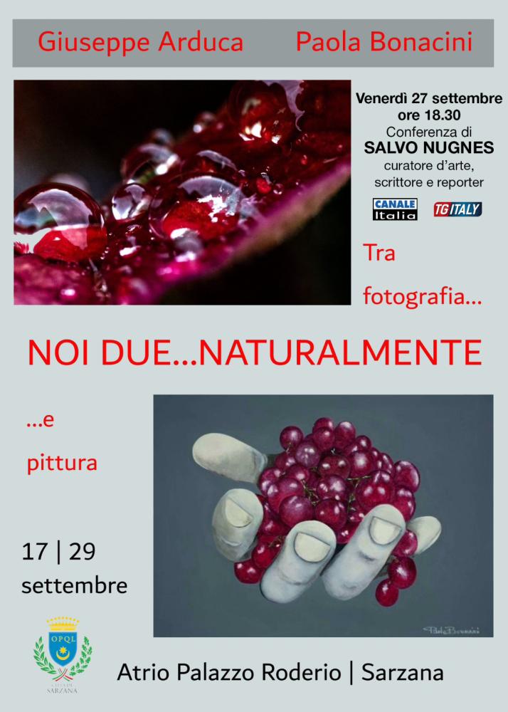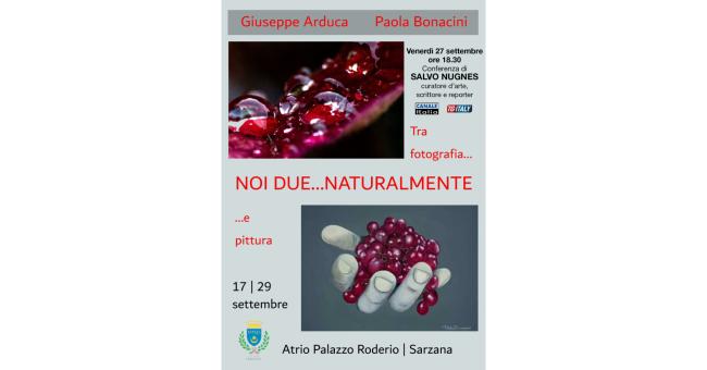 Il 17 settembre inaugura presso l'Atrio del Palazzo Roderio di Sarzana la mostra dal titolo “Noi due…naturalmente”, che vede protagonisti l’artista Paola Bonacini e il fotografo Giuseppe Arduca. La coppia, unita non solo nell’arte ma anche nella vita, torna a esporre insieme con una selezione di opere dedicate al tema dell’ambiente, un soggetto che accomuna profondamente le loro rispettive espressioni artistiche.