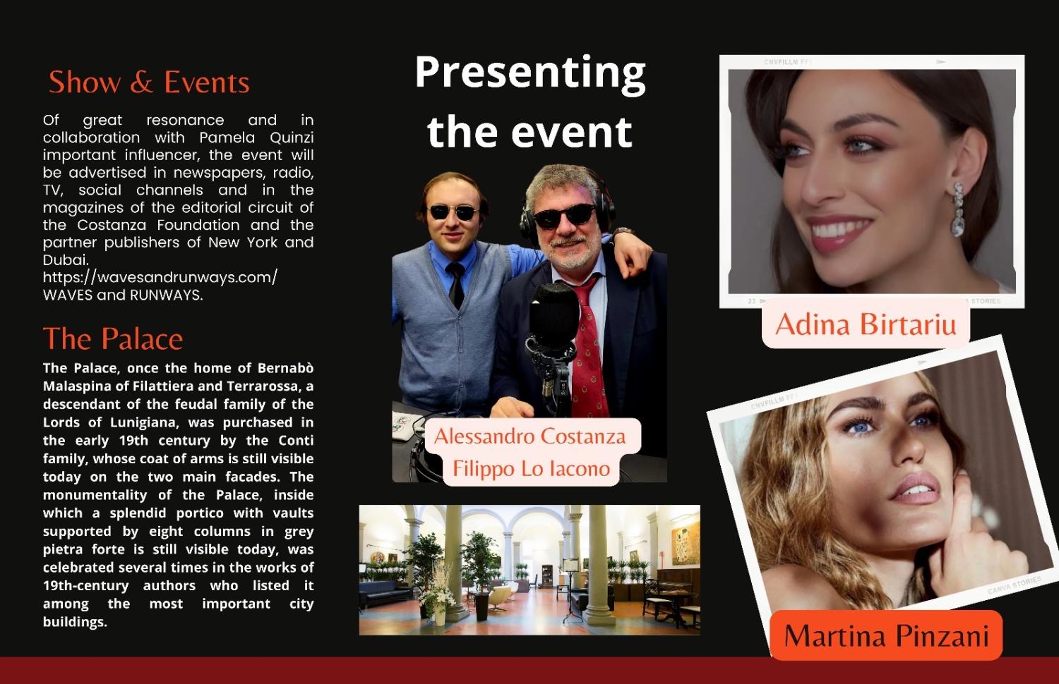 Si inizierà con la presentazione dell’evento alle 17,30 da parte di Alessandro Costanza e Filippo Lo Iacono con le assistenti attrici e modelle Adina Birtariu e Martina Pinzani, la prima presenza autorevole sarà la madrina dell’evento la giornalista , scrittrice , autrice e presidente di labirinto 14 luglio Francesca Della Valle che ritirerà il premio alla carriera per il ricco percorso nel mondo del giornalismo e nel mondo dello spettacolo. Personaggio televisivo poliedrico impegnato spesso nelle relazioni internazionali per convegni con autorevoli presenze e di importanti tematiche.