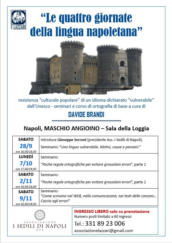 Evento promosso da I Sedili di Napoli ed organizzato dall'Ass. I Lazzari che prevederà interventi di personaggi del mondo artistico, conferenze e mini-corso base, a cura di Davide Brandi, su come evitare gli errori grossolani nella scrittura.