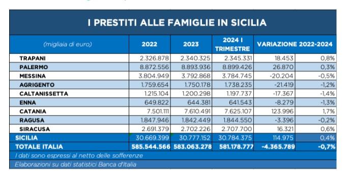 In controtendenza con il resto del paese, il credito alle famiglie siciliane non si è arrestato ed ha segnato