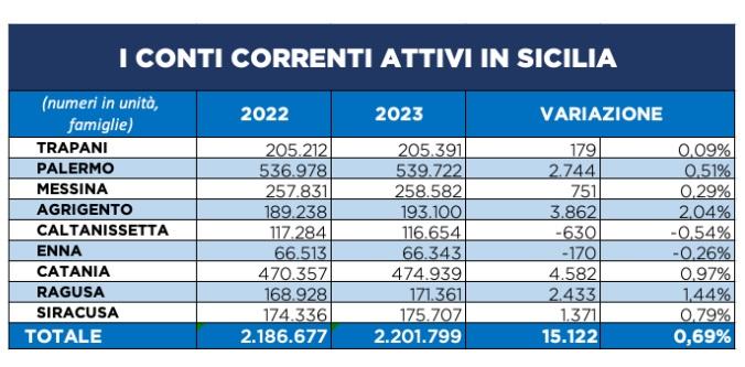 siciliano, che ha visto aumentare il numero dei conti correnti da 536.978 a 539.722 in 12 mesi, con una