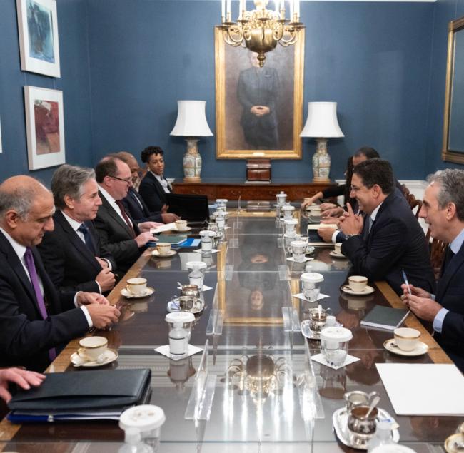 "Nell'incontro, il Segretario di Stato Antony J. Blinken ed il Ministro degli Esteri marocchino Nasser Bourita hanno discusso degli sforzi per promuovere la pace regionale e mondiale e rafforzare la partnership tra gli Stati Uniti d'America ed il Regno del Marocco.