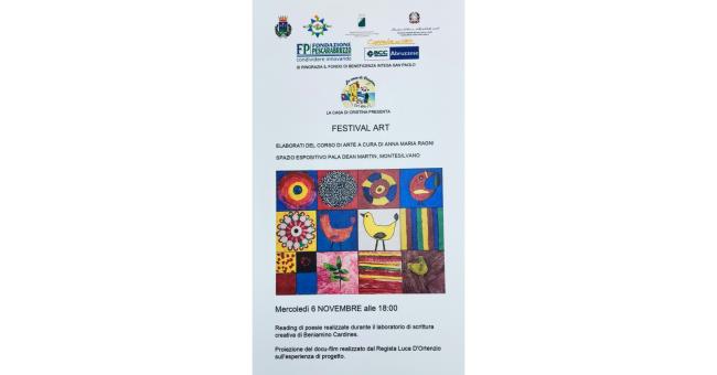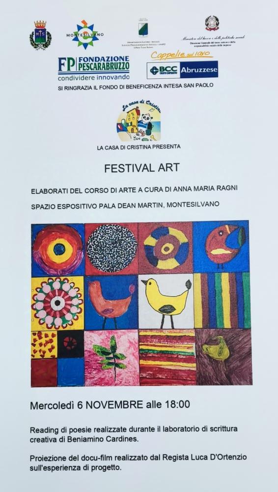 Il Festival Art è stato organizzato come esperienza di restituzione nell’ambito del progetto “Questo piccolo grande Abruzzo” realizzato grazie al contributo della Regione Abruzzo, Ministero del Lavoro e delle Politiche Sociali, Comune di Montesilvano, Fondazione PescaraAbruzzo, BCC Credito Cooperativo Cappelle, Intesa San Paolo Fondo di Beneficenza. In collaborazione con Bibliodrammatica aps.