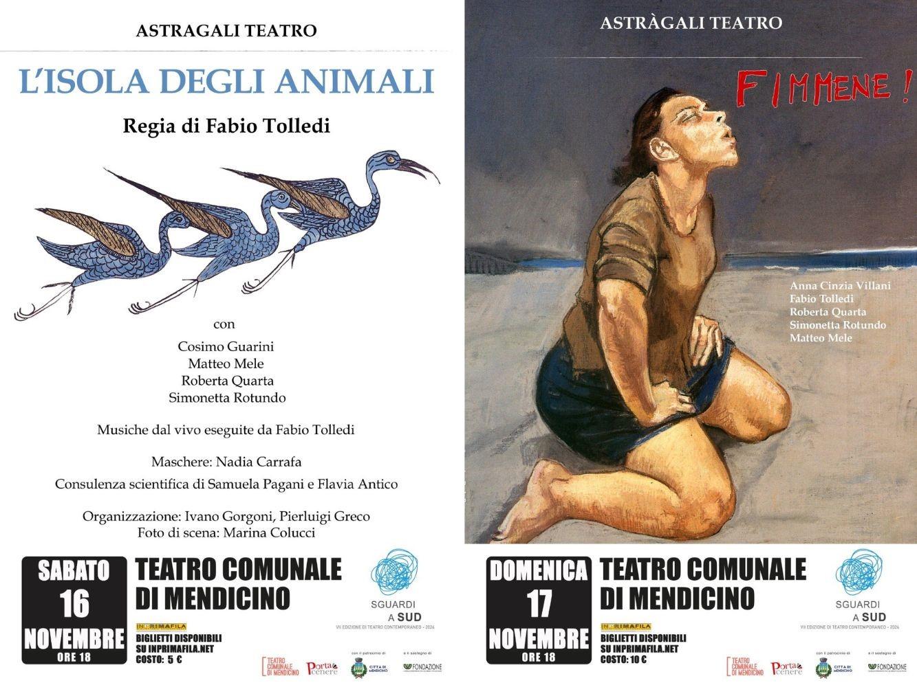 Il direttore artistico della rassegna Sguardi a Sud, Mario Massaro, commenta così i due spettacoli in programma al Teatro comunale di Mendicino: «Questo doppio appuntamento rappresenta un’occasione unica per il pubblico di Mendicino. “L’isola degli animali” è il primo appuntamento del teatro ragazzi di questa stagione; uno spettacolo pensato soprattutto per i più piccoli, ma capace di coinvolgere anche gli adulti, invitandoci a riflettere sulla nostra relazione con la natura e sulla giustizia tra le specie. Al contrario, “Fimmene” celebra la forza delle tradizioni salentine, intrecciando musica e storie di vita quotidiana in un viaggio emozionante e pieno di passione. Entrambi gli spettacoli, pur trattando temi diversi, sono un invito a riflettere sulla nostra identità culturale e sul mondo che ci circonda. Non lasciatevi sfuggire l’opportunità di vivere queste esperienze teatrali che sapranno toccare il cuore di ogni spettatore».