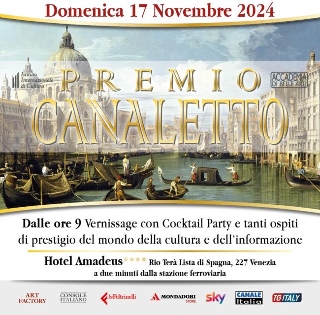 Il 17 novembre, la splendida città di Venezia farà da cornice all'inaugurazione del prestigioso Premio Canaletto, un evento imperdibile per gli appassionati d'arte e cultura, la cui cerimonia si tiene presso l'Hotel Amadeus, a due passi dalla stazione dei treni.