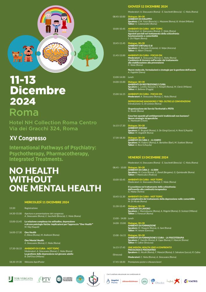 L'evento, organizzato dalla cattedra di Psichiatria dell'Università di Roma "Tor Vergata" in collaborazione con l'Accademia delle Scienze Psichiatriche, rappresenta un'importante occasione di confronto sui temi cruciali della psichiatria moderna, con particolare attenzione ai trattamenti integrati, psicoterapeutici e farmacologici.
