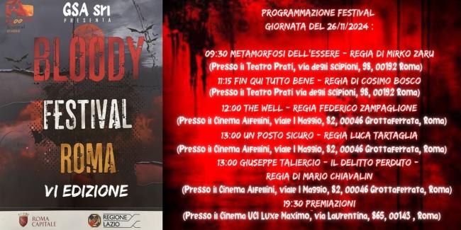 Il Bloody Festival Roma vi aspetta quindi Martedì 26 Novembre 2024... per una giornata di puro brivido cinematografico!