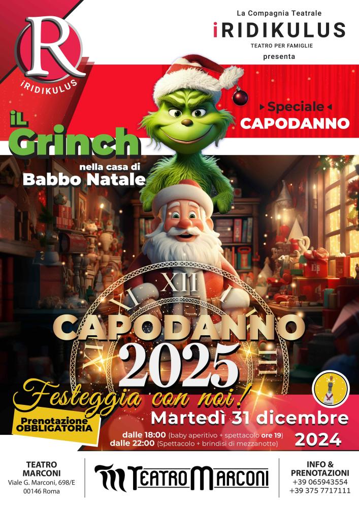 La Compagnia Teatrale “I Ridikulus” torna con l’evento più atteso dalle famiglie di Roma: “Capodanno per Famiglie”, giunto con successo alla sua ottava edizione! Quest'anno il protagonista sarà lo spettacolo “Il Grinch nella Casa di Babbo Natale”, una storia magica e comica per grandi e piccoli.