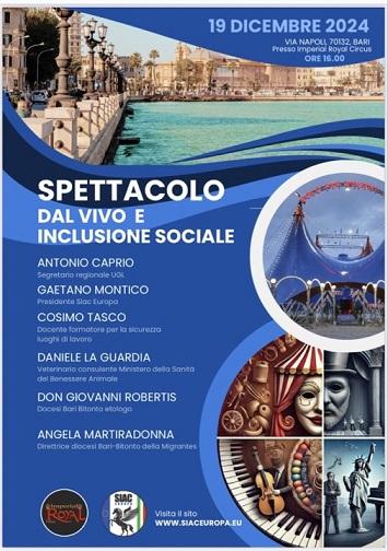 La SIAC Europa, organizzazione sindacale che rappresenta le istanze di imprese e lavoratori del settore dello spettacolo dal vivo e del benessere animale a livello europeo, ha organizzato una conferenza stampa che si terrà nella città di Bari, nel complesso circense Imperial Royal Circus, in via Napoli 70132, giovedì 19 dicembre alle ore 16.00.