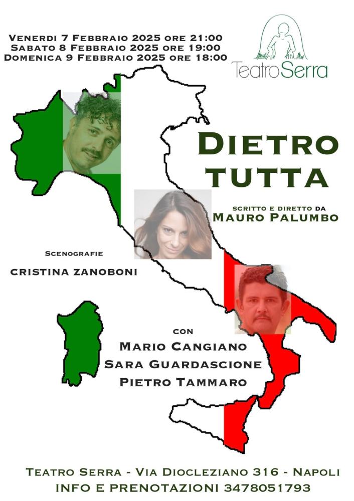 L’Amore in Italia al tempo del Pregiudizio nel nuovo progetto del Teatro Serra di Napoli per la stagione ‘Teatrisismi’: “Dietro tutta” una commedia scritta e diretta da Mauro Palumbo, con Mario Cangiano, Sara Guardascione e Pietro Tammaro. Scenografie, Cristina Zanoboni. Dal 7 al 9 febbraio e in replica il 15 e 16 febbraio, (venerdì ore 21:00, sabato ore 19:00, domenica ore 18:00) a Fuorigrotta, in Via Diocleziano 316. Info: teatroserra@gmail.com, 347.8051793.