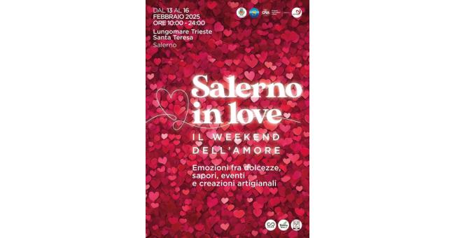 Quattro giorni per festeggiare l’amore su una delle passeggiate lungomare più belle d’Italia. Da giovedì 13 a domenica 16 febbraio, dalle ore 10 a mezzanotte, Salerno in love promette una romantica atmosfera, tra installazioni per realizzare fotografie uniche, iniziative, spettacoli, degustazioni e un mercatino ricco di artigiani e produttori di eccellenze.