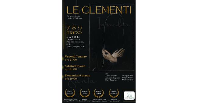 Debutta al Teatro Serra di Napoli “Le clementi”, trilogia di testi brevi di Maria Porzio a cura di Hirondelle sulle donne nella Bibbia il primo dei quali, “L’immacolata” è “Migliore Spettacolo” alla Golden Crown di MaxArt&Co e “Migliore Testo” e “Migliore Spettacolo” al Festival “InCorti da Artemia” dell’omonimo centro romano, gemellato con lo spazio flegreo. Dal 7 al 9 marzo in Via Diocleziano 316 (venerdì ore 21:00, sabato ore 19:00, domenica ore 18:00). Info: teatroserra@gmail.com, 347.8051793.