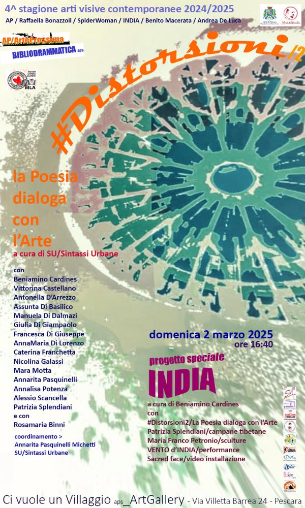 Domenica 2 marzo ore 16:40, quarto appuntamento con il progetto #DISTORSIONI/2 – La Poesia dialoga con l’arte nell’ambito della 4^ stagione di arti visive contemporanee presso “Ci vuole un villaggio aps_ArtGallery” (Via Villetta Barrea 24 - Pescara). Patrocinio Comune di Pescara. In collaborazione con MLA/Museo Lettera d’Amore.
