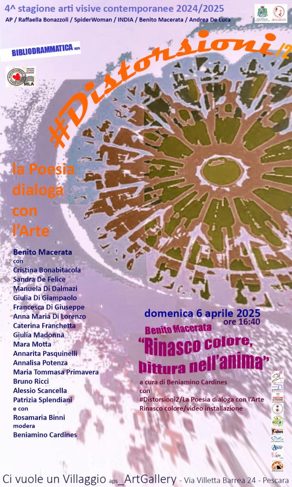 Domenica 6 aprile ore 16:40, quinto appuntamento con il progetto #DISTORSIONI/2 – La Poesia dialoga con l’arte nell’ambito della 4^ stagione di arti visive contemporanee presso “Ci vuole un villaggio aps_ArtGallery” (Via Villetta Barrea 24 - Pescara). Patrocinio Comune di Pescara. In collaborazione con MLA/Museo Lettera d’Amore.