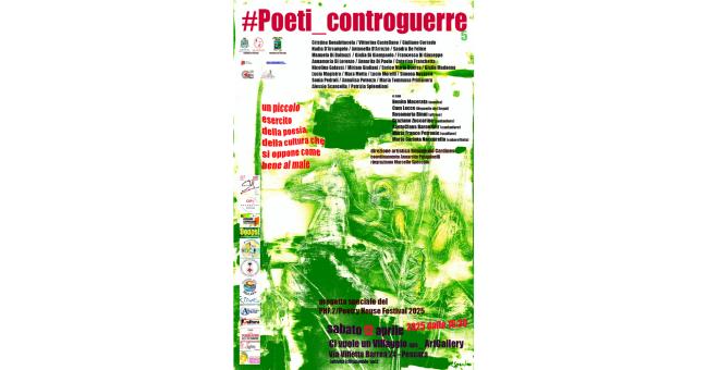 #Poeti_controguerre5 è un progetto speciale inserito nel programma del PHF.2/Poetry House Festival 2025, è patrocinato dal Comune di Pescara e dalla Provincia di Pescara. Con gli auspici del CEPELL/Centro per il Libro e la Lettura del Ministero della Cultura. Con il patrocinio della Casa della Poesia in Abruzzo “Gabriele D’Annunzio”. In collaborazione con il MLA/Museo Lettera d’Amore.