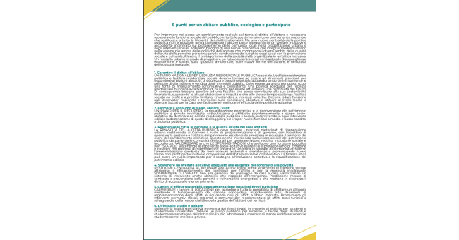 Nel primo pomeriggio sono previsti, invece, i gruppi di lavoro che affronteranno vari aspetti del diritto all'abitare: la partecipazione e la mobilitazione sui territori attraverso lo strumento delle campagne, la promozione di forme abitative collaborative e di pratiche di welfare dal basso, la rigenerazione urbana sociale e come ridurre gli effetti della crisi climatica nello spazio urbano.