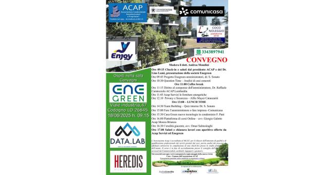 Codogno, 18 giugno 2025 – L’Associazione ACAP, da oltre un lustro attivamente impegnata nella promozione del risparmio energetico e dello sviluppo delle energie rinnovabili applicate al settore immobiliare, organizza un importante convegno a Codogno presso la Sala Ene Green. L’evento nasce con l’intento di rafforzare la sinergia tra mondo accademico e professionisti dell’immobiliare per una transizione concreta verso edifici sempre più performanti e sostenibili.