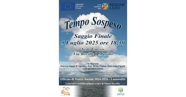 Si chiuderà il 5 luglio 2025 alle ore 18,30 con una grande Festa nel giardino della sede Gnosis di Castelluccia in Via Boville 1 il progetto “Tempo Sospeso”, ideato da Sabina Barzilai e realizzato da Artemista in collaborazione con la cooperativa sociale GNOSIS.