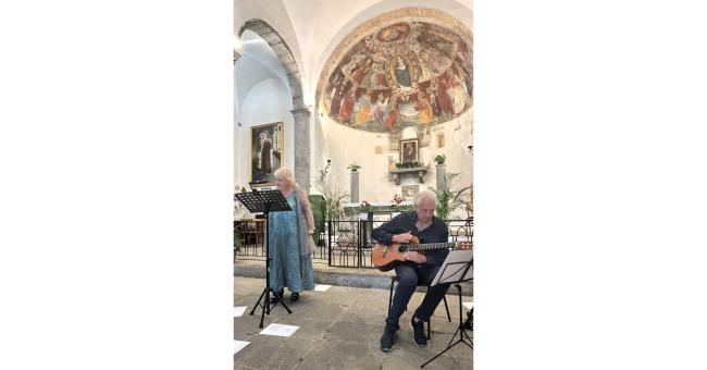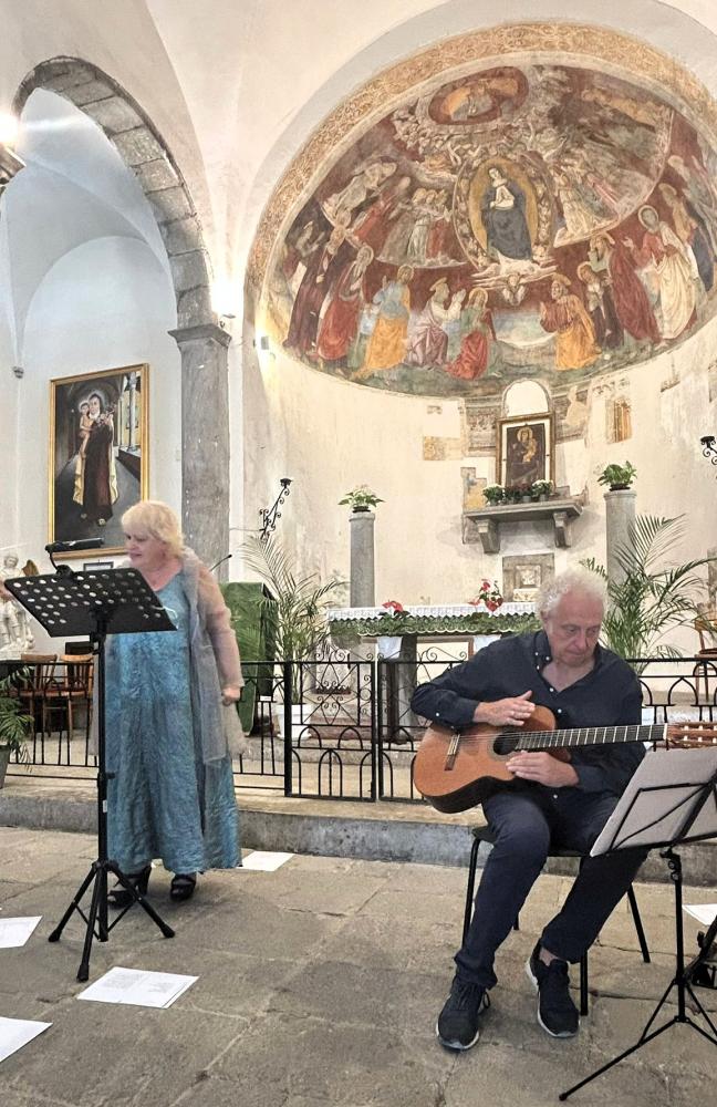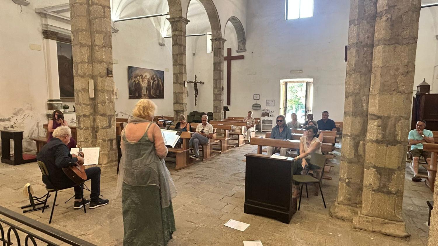 Paola Lorenzoni e Nicola Buffa: quando la voce incontra la musica. Quando Paola Lorenzoni è entrata nello spazio sacro e ha iniziato a parlare, accompagnata dalla chitarra del maestro Nicola Buffa, la sua voce ha trovato subito il punto d’incontro con la pietra e il legno della chiesa.