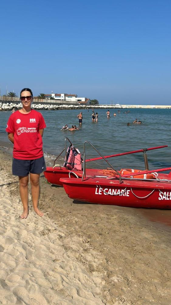 Marta Di Giovanni, bagnina Angeli del Mare Rescue Italy FISA: “Domenica 17 agosto verso le 11:00, nelle acque di Pescara Sud presso lo stabilimento balneare Le Canarie. Ero in servizio di pattugliamento acquatico con il pattino, a un certo punto alle mie spalle sento un uomo urlare e lanciare l’allarme che qualcuno si stava sentendo male in acqua. Raggiungo l’area interessata e il pericolante in pochi attimi, mi rendo conto che l’allarme lanciato dal bagnante che stava su un SUP, era stato provvidenziale. Un uomo aveva accusato un malore mentre nuotava, perdendo i sensi per pochi attimi, e si trovava in acqua preso dal panico e dalla difficoltà di non riuscire a nuotare bene per tornare a riva. Avvicinandomi col pattino, ho innanzitutto rassicurato il pericolante e una volta raggiunto, sono intervenuta lanciandogli il salvagente di salvataggio, per assicurargli un punto di galleggiamento. Successivamente l’ho riportato a riva. Una volta a terra, l’uomo si è seduto in attesa dell’arrivo dei soccorsi. I parametri vitali sono stati monitorati dal personale medico risultando normali. L’uomo mi ha ringraziata, felice di essere stato salvato da una donna e da un Angelo del Mare.”