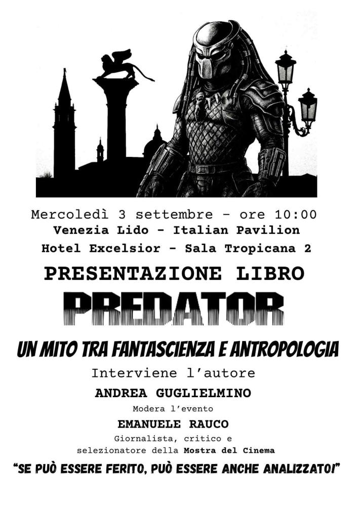 Il saggio ‘Predator: Un mito tra fantascienza e antropologia’, scritto da Andrea Guglielmino, Gianmarco Bonelli e Guglielmo Favilla, edito da Weird Book, sarò presentato al Lido di Venezia, Hotel Excelsior, Sala Tropicana 2 il 3 settembre alle ore 10.00, nella cornice della Mostra del Cinema.