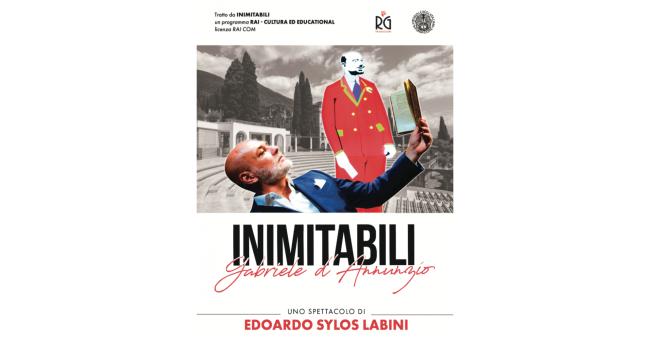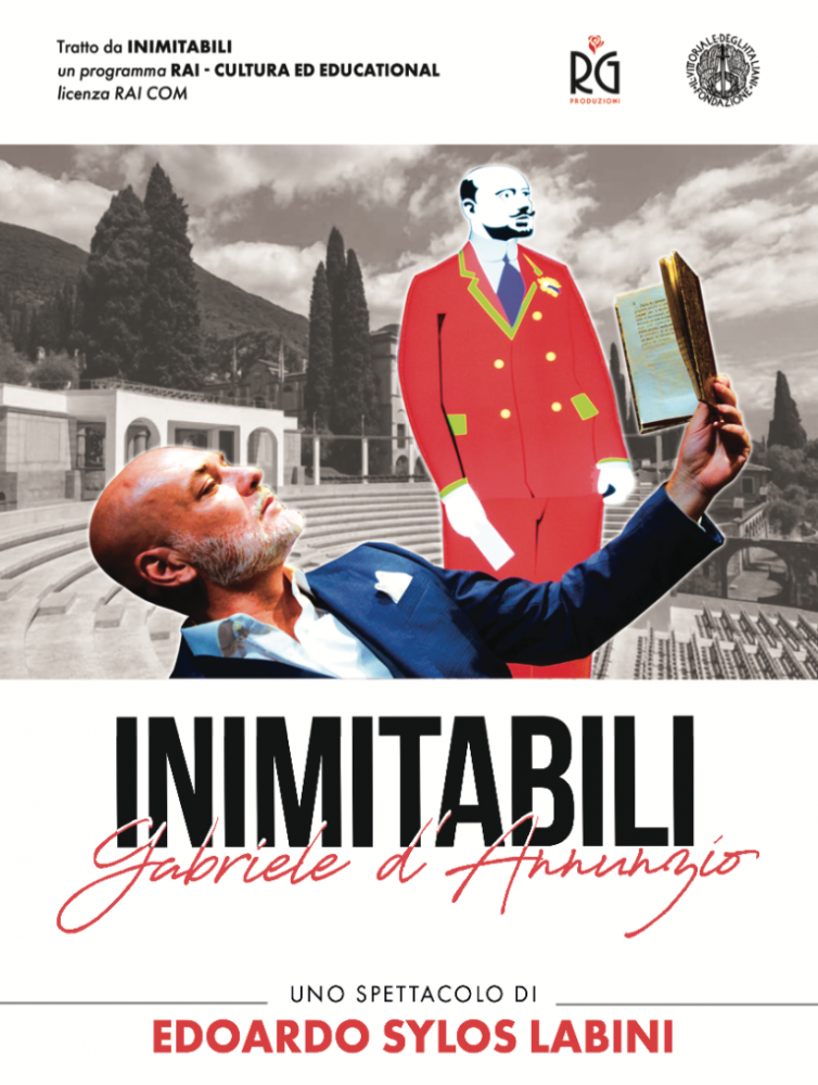“Gabriele d’Annunzio, una vita inimitabile” è uno spettacolo in diretta di Rai Contenuti Digitali e Transmediali, direttore Marcello Ciannamea, con Edoardo Sylos Labini e il maestro Sergio Colicchio, tratto dal programma di Rai Cultura di Edoardo Sylos Labini e Angelo Crespi, "Inimitabili".