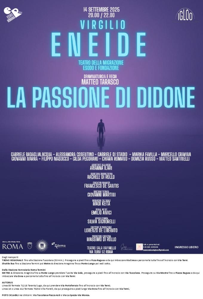 Il 14 settembre 2025 andrà in scena La passione di Didone, secondo episodio del percorso biennale diretto da Matteo Tarasco e promosso dall’Associazione Culturale IGLOO.