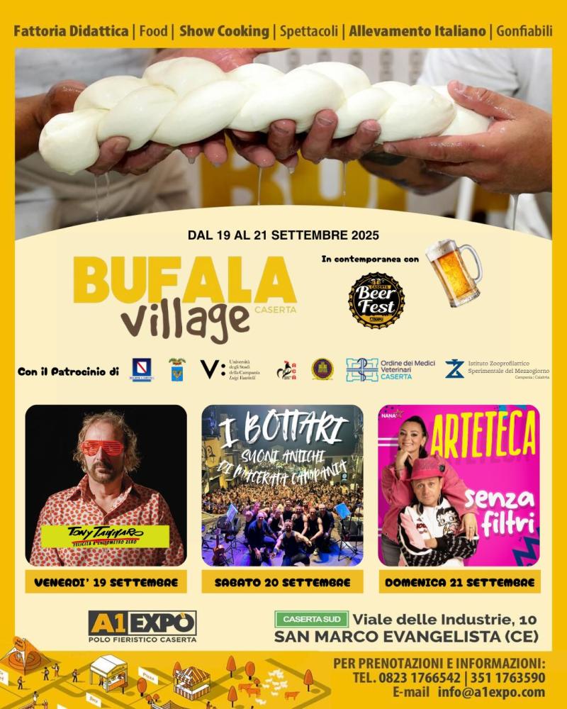 Bufala Village, insieme al Caserta Beer Fest, offrirà al pubblico un’esperienza unica capace di unire gastronomia, tradizioni, spettacoli e divertimento, confermando ancora una volta il ruolo centrale della Campania e di Caserta nella valorizzazione delle eccellenze enogastronomiche italiane.