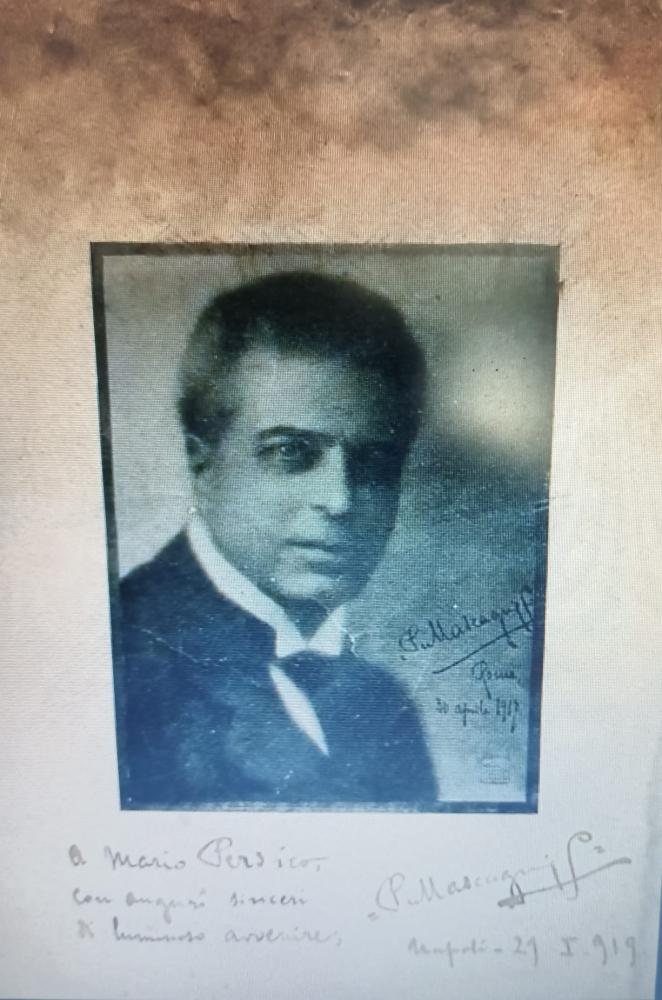 L’autografo di Pietro Mascagni, datato 30 aprile 1917, segna simbolicamente l’inizio di un rapporto che avrebbe avuto grande importanza per la carriera del giovane compositore partenopeo.