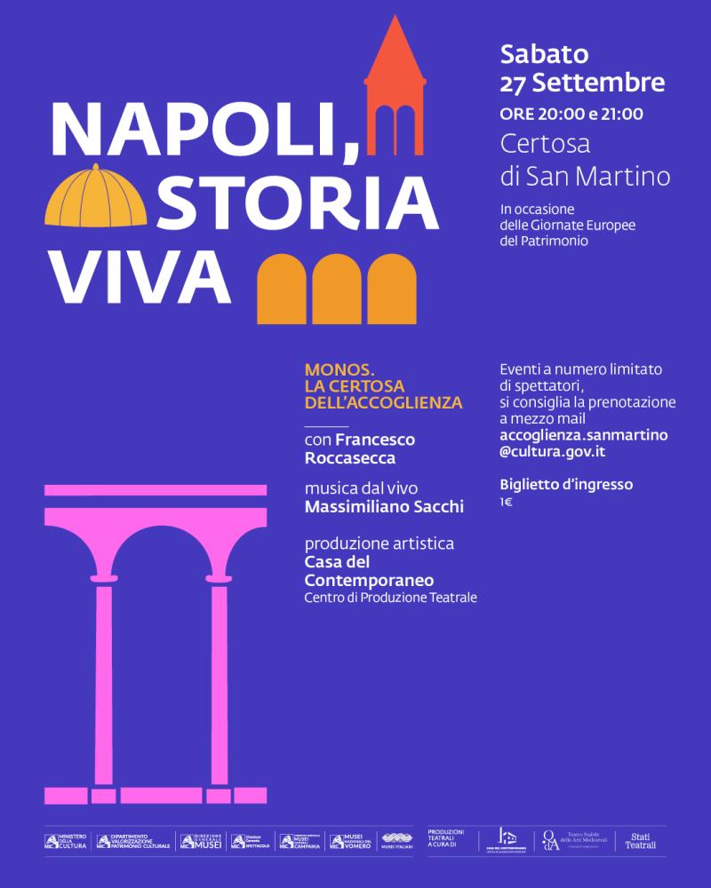 “Napoli, Storia Viva”, è un progetto di valorizzazione museale attraverso lo spettacolo dal vivo della Direzione regionale Musei della Campania, realizzato in collaborazione con il Teatro Stabile delle Arti Medievali, gli Stati Teatrali e il centro di produzione teatrale Casa del Contemporaneo, finanziato dalla Direzione Spettacolo dal Vivo del Ministero della Cultura.