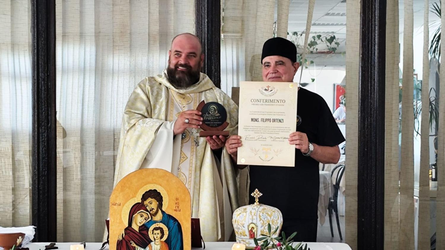 Copanello (CZ) – nella suggestiva cornice di Copanello in provincia di Catanzaro, si è svolta la cerimonia ufficiale di consegna del Premio San Francesco 2025, prestigioso riconoscimento promosso da 28 anni, prima dalla Congregazione dei Fratelli e Sorelle Minori e adesso dalla Fraternità di San Francesco. Il premio, consegnato dal Ministro Generale della Fraternità di San Francesco, è stato attribuito quest’anno a Monsignor Filippo Ortenzi, Arcivescovo Metropolita della Chiesa Ortodossa Italiana, per l’alto valore della sua testimonianza e per il costante impegno profuso a favore della libertà religiosa dei cristiani nel mondo, della pace tra i popoli e della fraternità universale.