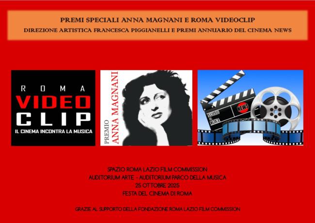 CONSEGNA PREMI SPECIALI XXII Edizione “Roma Videoclip - il Cinema incontra la musica” con anticipazioni della Festa del Roma Videoclip Live Indie a conclusione dell’Edizione 2025. Roma Videoclip-il cinema incontra la musica è la più importante kermesse nazionale una rassegna che omaggia artisti, registi, videoclip, brani e compositori di film, live film concerto, produzioni e serie web. Un appuntamento dove s’incontrano e sono premiati i più importanti protagonisti del settore cinematografico e musicale, con attenzione anche a videoclip indipendenti e sociali. L’obiettivo di Roma Videoclip è di rendere omaggio al connubio tra cinema e musica e di valorizzare il videoclip, che rappresenta una forma di arte espressiva, un micro film