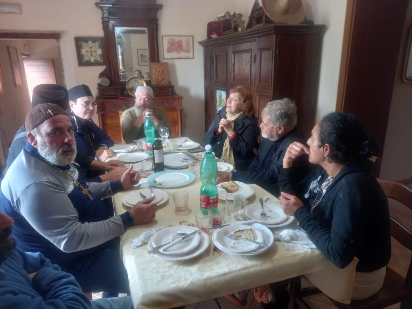 Una delegazione della Chiesa Ortodossa Italiana, composta dall’arcivescovo Metropolita Sua Beatitudine Filippo di Roma, dal parroco di Frosinone e Vicario Castrense padre Sergio e da una nostra simpatizzante, la dottoressa Irene D’Amico, plurilaureata in scienze sanitarie tecnico diagnostiche e tecnico sanitarie di laboratorio medico, già coordinatrice del Laboratorio Centrale dell’Ospedale Santo Spirito di Roma, ha effettuato una visita alla Comunità Ajeonà del Vecchio Mulino, sita a Rocca D’Evandro, un comune di meno di tremila abitanti sito in provincia di Caserta, ai confini del Lazio (confina con Cassino - FR), in Terra di Lavoro, ai piedi del Monte Camino nella valle del Garigliano (fiume che nasce dalla confluenza del Liri e del Gari, ambedue provenienti dal frusinate, nella quale opera come ieromonaco missionario il reverendo frate Elia Biagio, della Fraternità di San Francesco, ordine monastico francescano ortodosso del quale è Superiore Generale mons. fra Giovanni Maddamma, vescovo di Bari e del Mercurion.