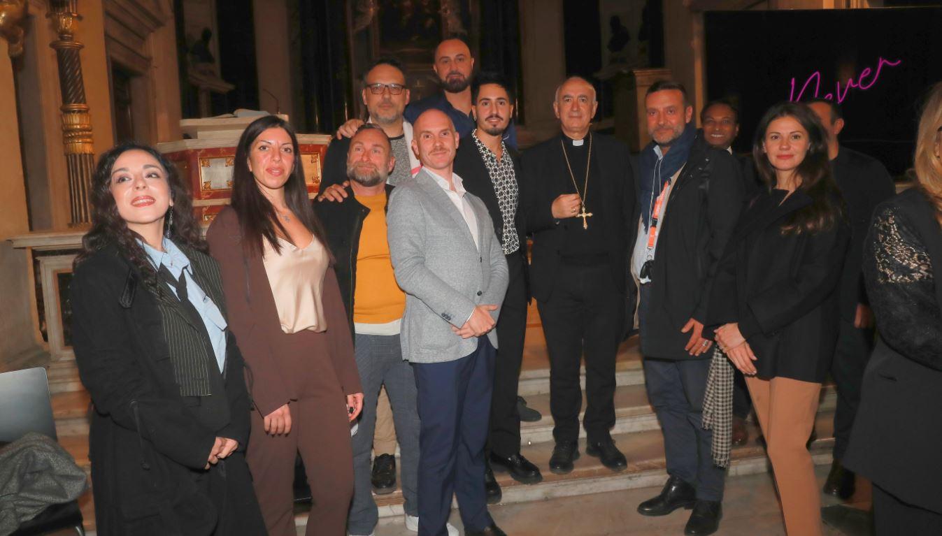 Presidente della Pontificia Accademia di Teologia, S.E. Mons. Antonio Staglianò ha introdotto la serata con una riflessione sul valore spirituale e culturale dell’incontro tra le arti. Ha sostenuto e sottolineato l’importanza di comunicare attraverso il linguaggio della bellezza ed esposto la volontà di riempire piazza del Popolo e la Chiesa degli artisti, supportando inoltre l’iniziativa di Maverick di voler riaprire il teatro Quirinetta per farlo diventrare la Casa degli artisti dove formare nuovi giovani talenti.