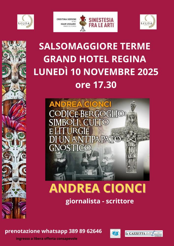 La conferenza verterà soprattutto sulle credenze neognostiche del presunto papa Francesco. "Lo Gnosticismo - commenta Andrea Cionci - è l'eresia più antica e inversiva rispetto al Cristianesimo, tuttavia estremamente mimetica. Conoscere tale credenze spiega oggi gran parte delle follie che accadono intorno a noi, dalle costrizioni sanitarie, all'immigrazionismo selvaggio, alla cancel culture e al genderismo militante, per non parlare dell'abolizione del contante e del motore termico: tutte strategie di controllo capillare e tecnologico dell'"uomo nuovo", meticciato, senza patria, sesso, famiglia, identità. Bergoglio è stato il megafono di queste istanze gestite da poche elite globaliste, che tuttavia tengono in mano il mondo. Ecco perché anche i laici devono approfondire: è un discorso le cui conseguenze stiamo pagando e pagheremo tutti”.