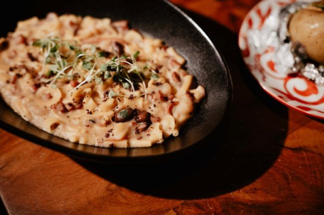 Il menu dello Chef Emanuele Esposito ha accompagnato gli ospiti in un vero e proprio Grand Tour culinario d'Italia, reinterpretando la tradizione con raffinatezza. Si è iniziato con il "Mare a Corte", una bruschetta che ha richiamato i sapori mediterranei del Sud Italia, con alici, pomodoro, capperi e un tocco esotico di uva sultanina, evocando le scoperte dei viaggiatori. A seguire, la "Mescafrancesca" di pasta con totani, patate e olive nere caiazzane ha celebrato la cucina tradizionale e autentica, tanto apprezzata da chi esplorava la penisola. Un piatto che ha sorpreso per la sua originalità è stata "La patata del Grand Tour", patata sotto cenere con hummus di ceci e salsa chimichurri, un connubio di sapori che ha suggerito le scoperte culinarie e le influenze multiculturali che i viaggiatori incontravano lungo il loro percorso. Il dessert, la "Nera di Capri", una caprese al cioccolato con gelato fondente, ha rappresentato una dolce e tipica conclusione, omaggio alla celebre pasticceria campana.