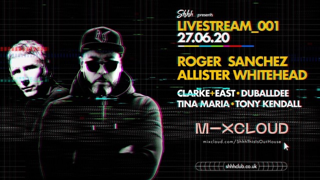 L'evento online Shhh Livestream_001 prende vita sabato 27 giugno e fa ballare con la musica di tanti top dj: Roger Sanchez, Allister Whitehead, Clarke + East e Duballdee, dalle 6 del pomeriggio alle una (ora italiana), su Mixcloud Live, piattaforma dedicata esclusivamente alla musica e ad esperienze multimediali che lasciano il segno. Il link da mettere nei preferiti è questo: www.mixcloud.com/ShhhThisIsOurHouse.