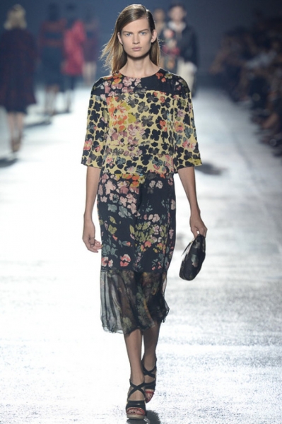 Nel primo giorno di sfilate parigine corriamo a vedere le proposte di un giovane stilista, Anthony Vaccarello. Presenta Gonne molto belle chiuse da fibbie che sembrano dei moschettoni, tagliate obliquamente. Mentre gli abiti che fa uscire, malgrado siano “mini” hanno delle grandissime lettere cubitali. Uno stilista che la stampa seguirà anche in futuro con attenzione.