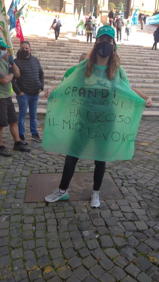 Sono tornati in piazza i lavoratori di Roma Termini che rischiano il posto a causa del restyling in corso nello scalo ferroviario della Capitale.