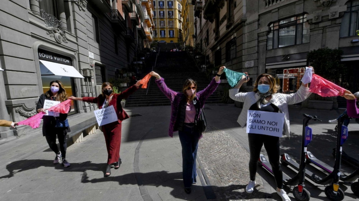 Anche a Napoli le proteste si sono succedute, un presidio di donne, sempre usando le mutande come simbolo, ha formato una catena umana e anzichè tenersi per mano, ha usato degli slip per unire la catena: "Perché le mutande non fanno venire il Covid, mentre vestiti, scarpe e gioielli sì", questo lo slogan vista la disparità di alcune attività tenute aperte e altre simili tenute chiuse.