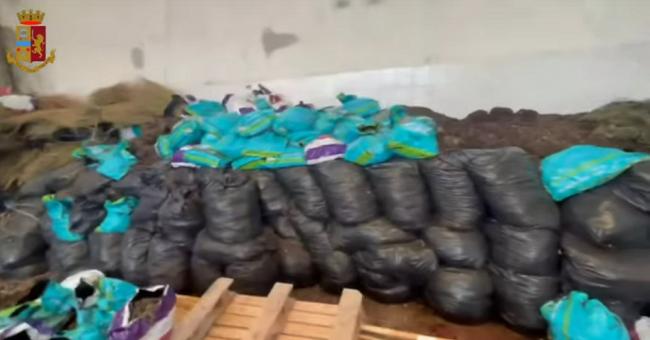 La perquisizione del capannone ha portato al sequestro di 241 chili di marijuana nascosta all’interno di diversi sacchi di plastica.