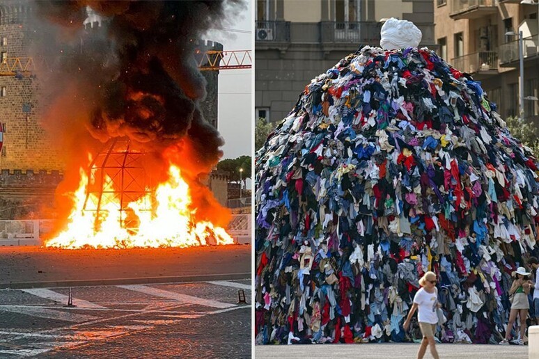 Un incendio ha completamente distrutto all'alba la 'Venere degli stracci', l'installazione di arte contemporanea realizzata dall'artista Michelangelo Pistoletto. Le fiamme hanno sciolto la statua e ridotto in cenere gli indumenti vecchi che la 'adornavano'. In piazza Municipio a Napoli, per domare le fiamme, sulla cui origine si indaga, vigili del fuoco e polizia municipale. L'incendio è scoppiato tra le 5,13 e le 5,30. A testimoniarlo i video postati da passanti e tassisti che in quei minuti attraversavano la piazza. Della statua della 'Venere' restano solo pochissimi brandelli di tela di vetroresina. Per il resto, a salvarsi è stata solo la struttura metallica. Varie le ipotesi sulle cause dell'incendio anche se appare da escludere l'autocombustione visto che la struttura non conteneva nessun apparato elettrico.