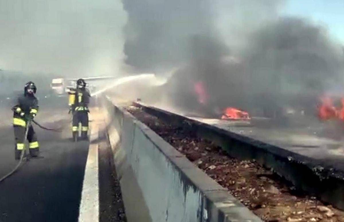 Auto a fuoco sull'autostrada A14 nel tratto compreso tra Val di Sangro e Ortona verso Pescara. Si registrano 7 chilometri di coda. All'altezza del chilometro 410 il traffico attualmente transita su una corsia. Sul posto vigili del fuoco, soccorsi meccanici, le pattuglie della Polizia Stradale e il personale della Direzione 7° Tronco di Pescara di Autostrade per l'Italia.Â