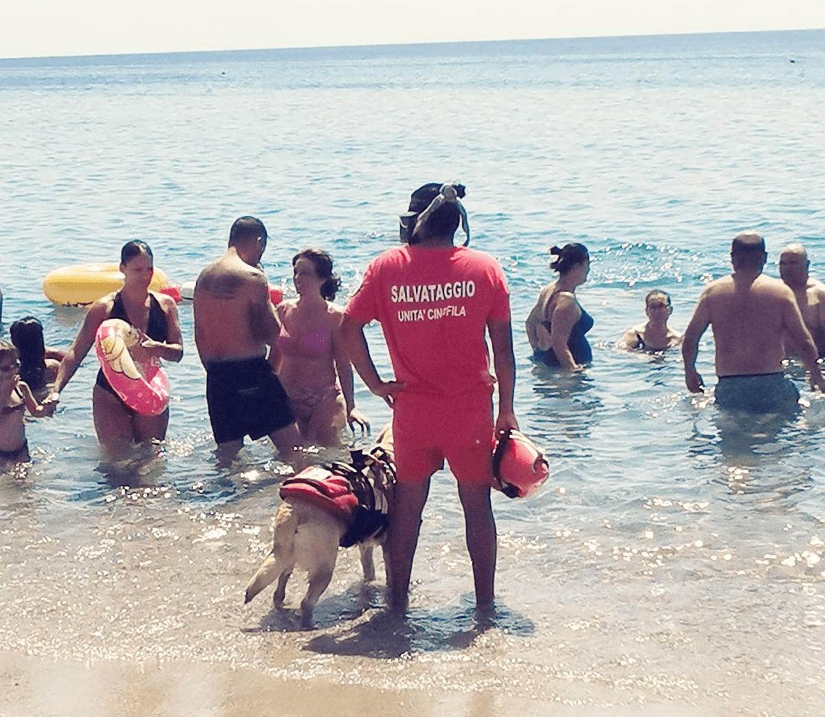 L’Unità Cinofila di Salvataggio Operativa Anpas Croce Verde Catanzaro tempestivamente si è tuffata in acqua per il recupero dei 4 bambini in una situazione di incolumità per quest’ultimi, una volta tranquillizzati, fatti calmare e fatti rimanere al di sopra dei mezzi in quanto gli stessi erano in uno status di totale panico e non solo, l’U.C. operativa agganciando sia la canoa e sia il gonfiabile con a bordo i 4 bambini al cane, il binomio operativo Giancarlo e il cane Mae li hanno riportati rispettivamente a riva, riconsegnandoli ai rispettivi genitori, genitori che a loro volta li hanno rassicurati e tranquillizzati.
