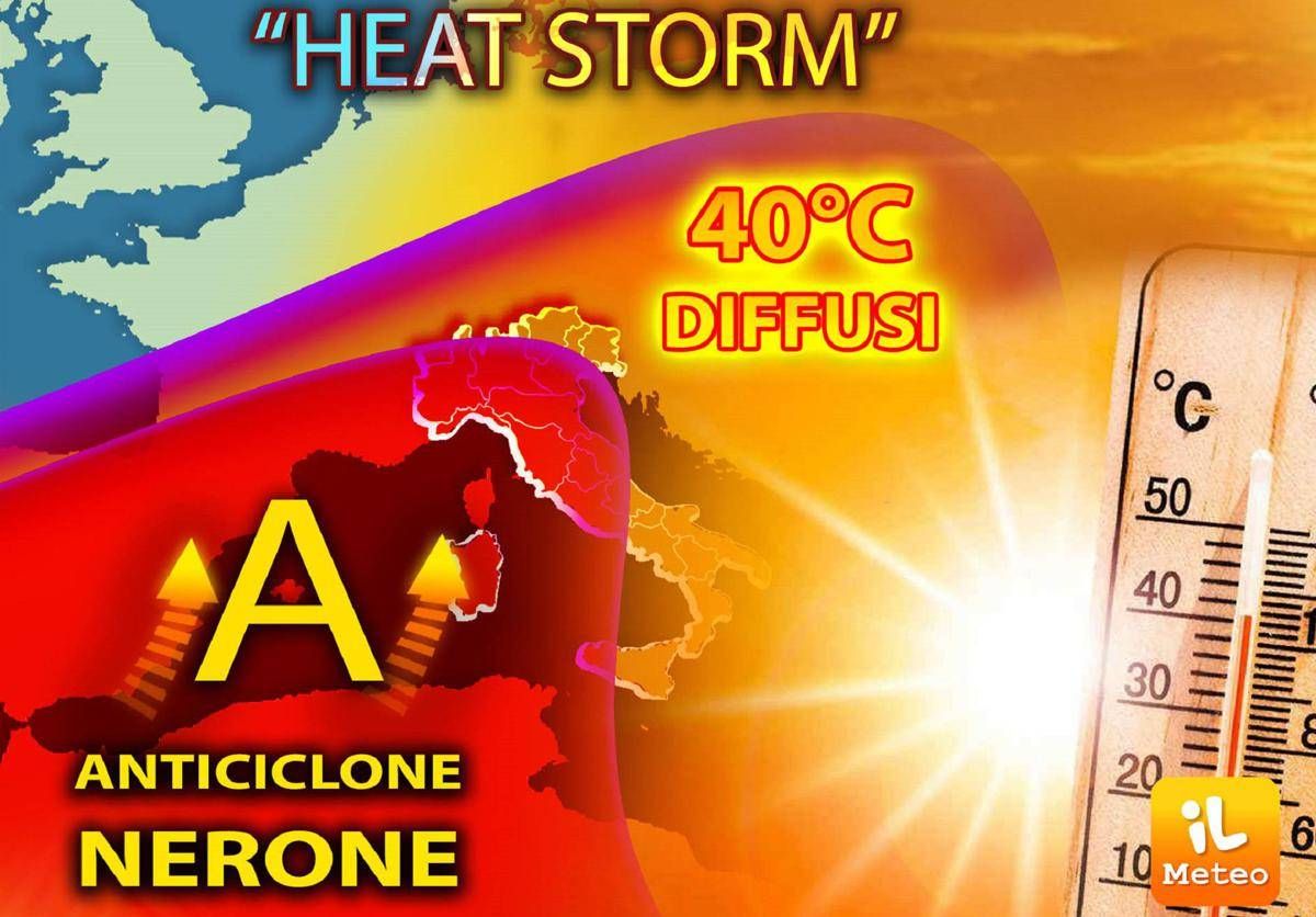 Il meteo di oggi e domani caratterizzato dall'arrivo dell’Heat Storm di Nerone, la tempesta di caldo con temperature in aumento di altri 3-4 gradi entro lunedì. La definizione ‘Heat Storm’ viene usata in meteorologia per descrivere un’ondata di caldo con massime oltre i 37,8°C per almeno 3 giorni su un’ampia superficie. E con Nerone raggiungeremo e supereremo questi valori su quasi tutto il Paese.Â