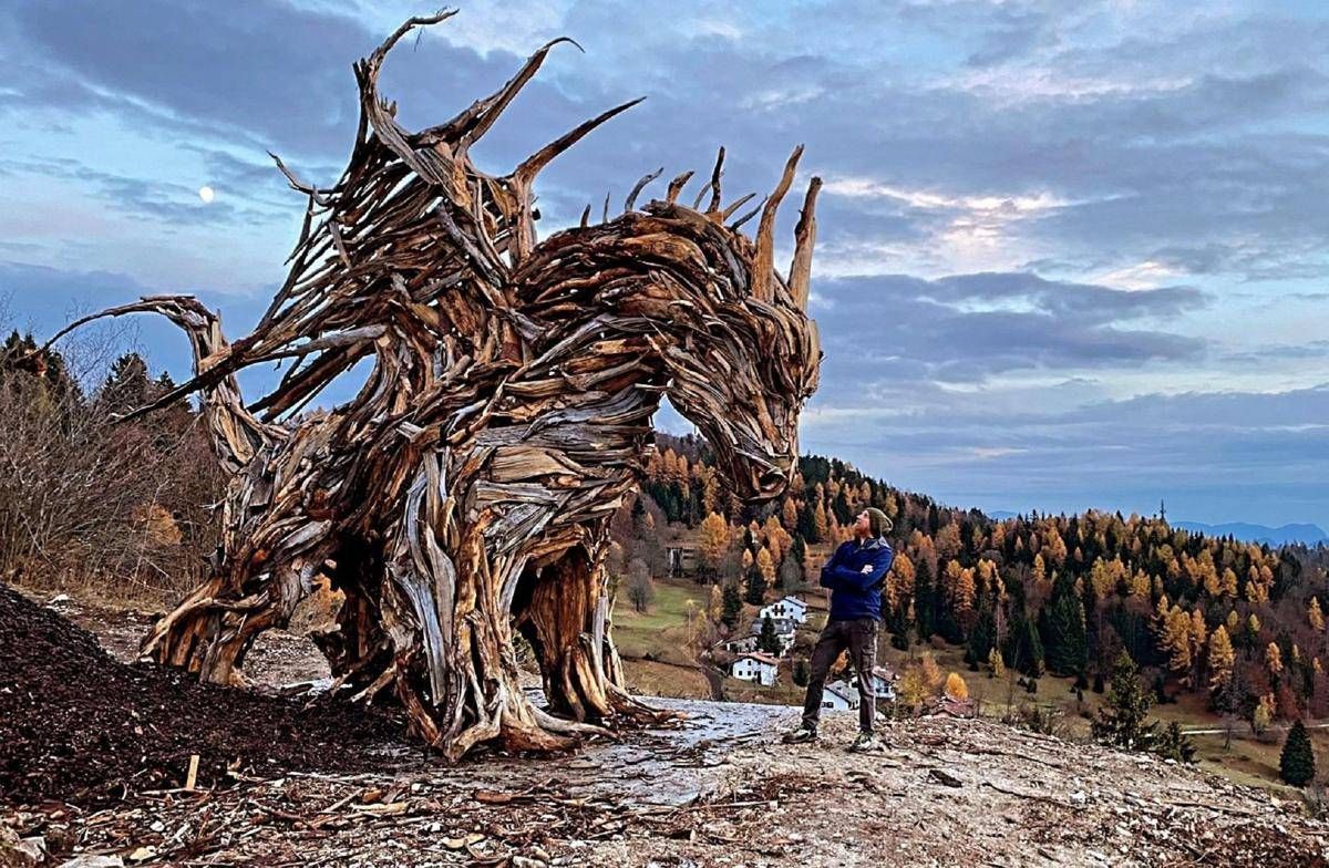 E' stato distrutto nella notte da un incendio il Drago di Vaia, l'opera-simbolo realizzata dallo scultore di Roana Marco Martalar a Magrè di Lavarone, sull'Alpe Cimbra, con gli scarti del legno degli alberi abbattuti dalla tempesta Vaia, nel 2018. Sul rogo, quasi certamente doloso, indagano le forze dell'ordine. Â